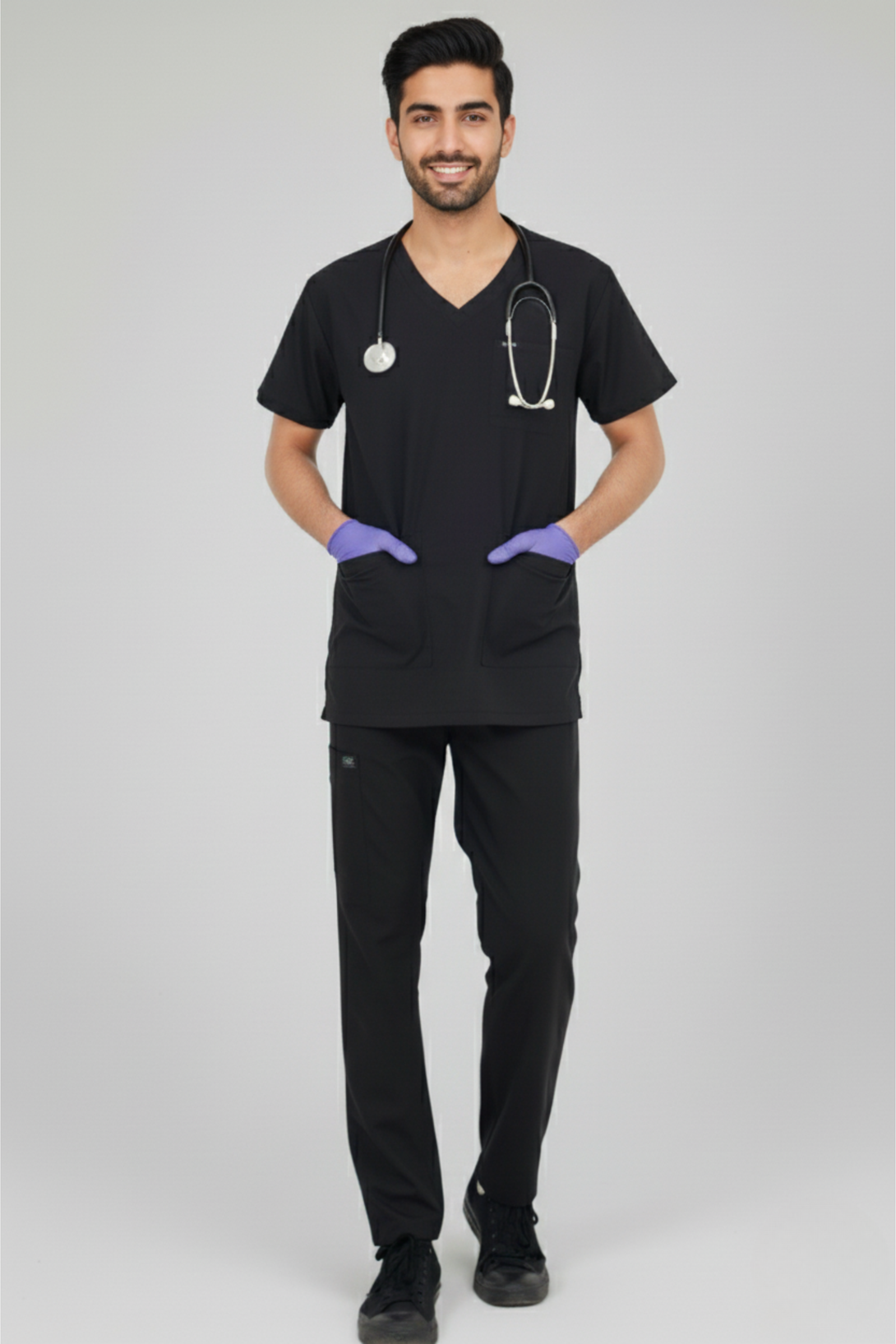 Designed for medical professionals who demand comfort and performance, this premium scrub is crafted from Polyviscose Fabric with a Peach Finish for a soft, luxurious feel all day long.