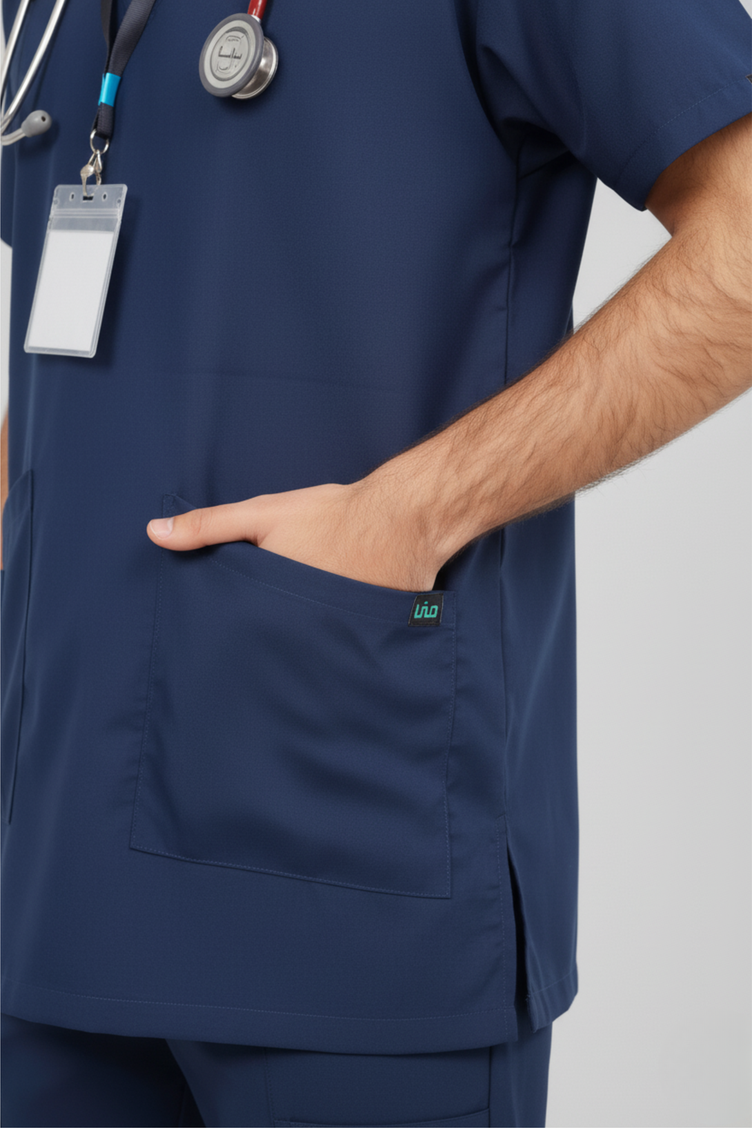Designed for medical professionals who demand comfort and performance, this premium scrub is crafted from Polyviscose Fabric with a Peach Finish for a soft, luxurious feel all day long.