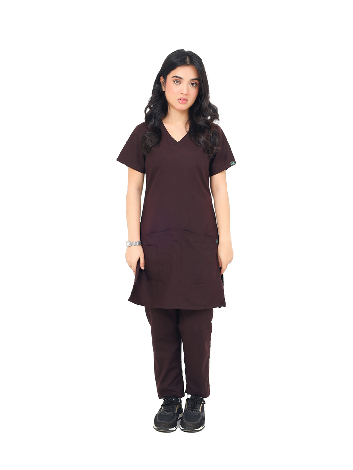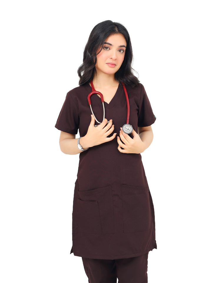 Women Maroon Scrub - Flap V Neck